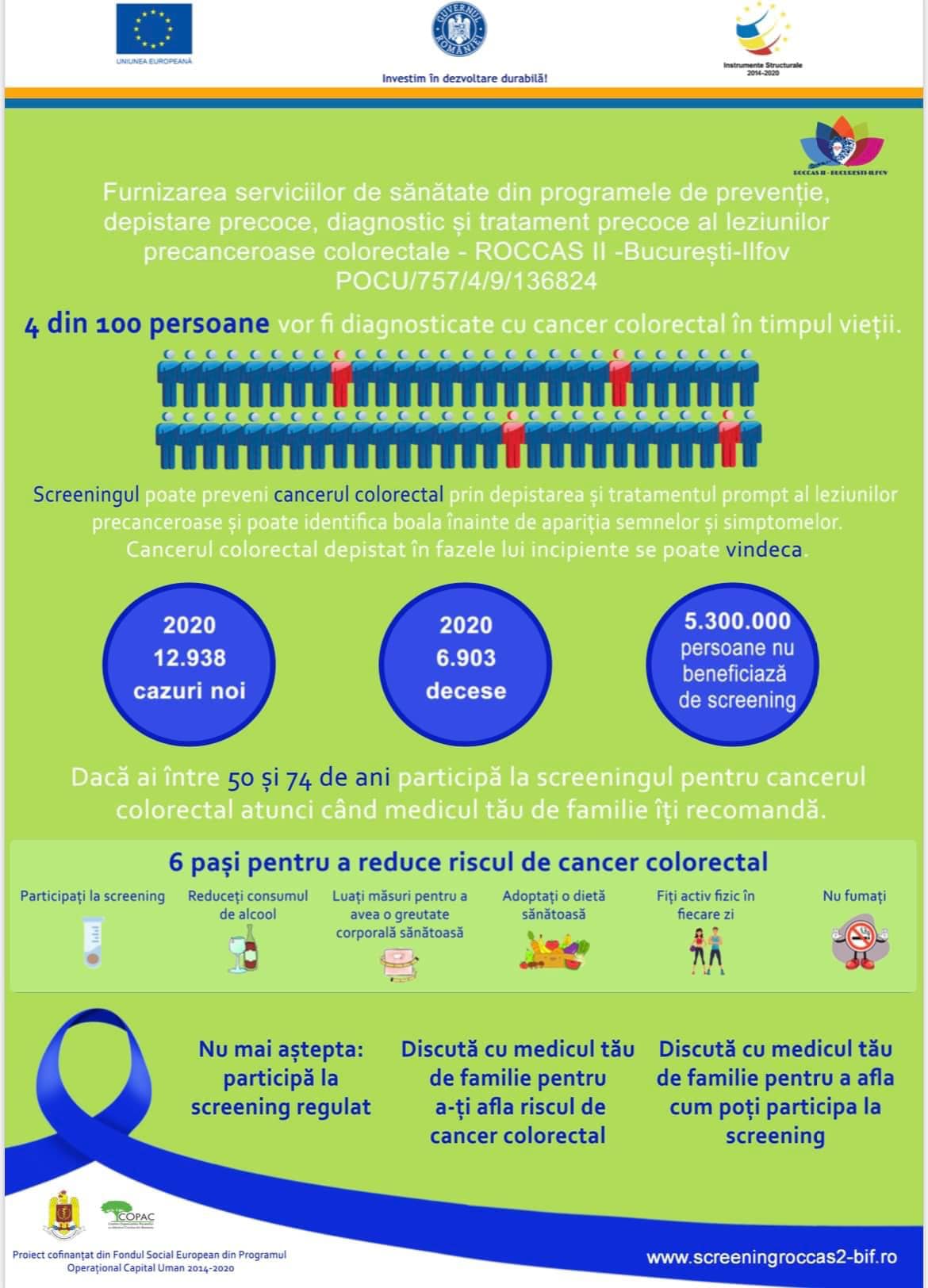 Proiectul ROCCAS II este co-finanțat prin Programul Operațional Capital Uman 2014-2020. Obiectivul specific îl reprezintă creșterea numărului de persoane care beneficiază de programe de sănătate și de servicii orientate către prevenție, depistare precoce (screening), diagnostic și tratament precoce pentru principalele patologii