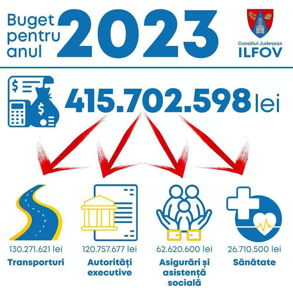 Preşedintele Consiliului Judeţean Ilfov, Hubert Thuma, a anunţat că, pentru anul 2023, Consiliul Județean Ilfov are un buget de peste 415 milioane de lei. Bugetul a fost aprobat în ședință de consiliu.