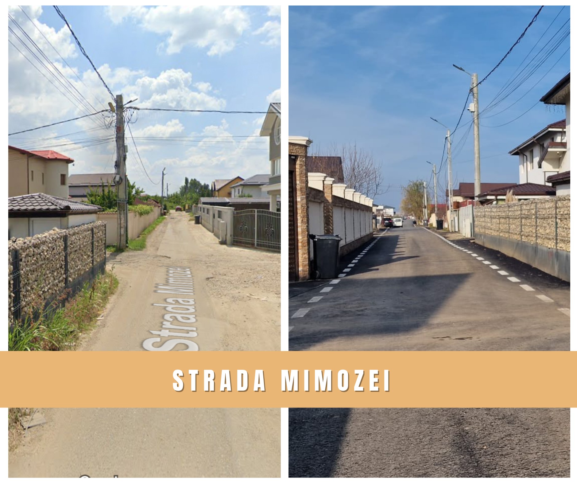 „Pentru început, vreau să vă aduc la cunoștință faptul că, la finalul anului trecut, am modernizat patru străzi, pentru care lărgirea și consolidarea acostamentelor erau necesare, inclusiv asfaltarea. Străzile modernizate sunt: Fortului (468 de metri) – a fost lărgită de la 4 la 5 metri, iar acum circulația se desfășoară pe ambele sensuri de mers; Mimozei (547 de metri) – a fost lărgită de la 3 metri la 4 metri de carosabil; Narciselor (400 de metri) – a fost lărgită de la 4 metri la 5,5 metri de carosabil; Crenguţei (290 de metri) – a fost lărgită de la 4 metri la 5,5 metri de carosabil.