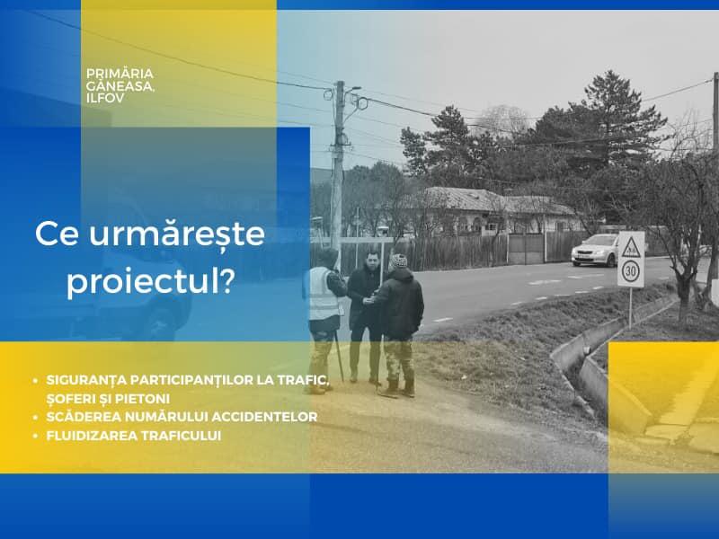 „A fost demarată procedura de cadastrare pentru amenajarea unui sens giratoriu la intersecția Drumului Judeţean100 cu Drumul Judeţean 300 din zona satului Găneasa, comuna Găneasa, județul Ilfov. Scopul proiectului este, în primul rând, creșterea gradului de siguranță a participanților la trafic, atât șoferi, cât și pietoni. În plus, urmărește scăderea numărului accidentelor rutiere și fluidizarea traficului”, a transmis primarul Niculae Raul Gabriel. De altfel, el este iniţiatorul acestui proiect mult aşteptat de şoferii din Găneasa, dar şi de cei care tranzitează zona respectivă.