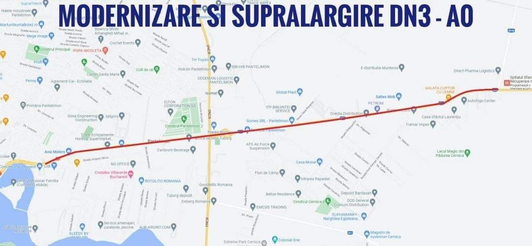 „În urma expirării termenului de depunere, astăzi au fost depuse 3 oferte pentru elaborarea Studiului de Fezabilitate pentru lărgirea la patru benzi a Drumului Naţional 3 între Drumul Judeţean 301(oraşul Pantelimon) şi intersecţia cu Drumul Judeţean 301 B(Brăneşti-Găneasa), al cărui obiectiv general constă în conectivitatea Centurii București cu Autostrada Bucureștiului #A0 și cu rețeaua locală de drumuri”, a precizat Scrioşteanu.