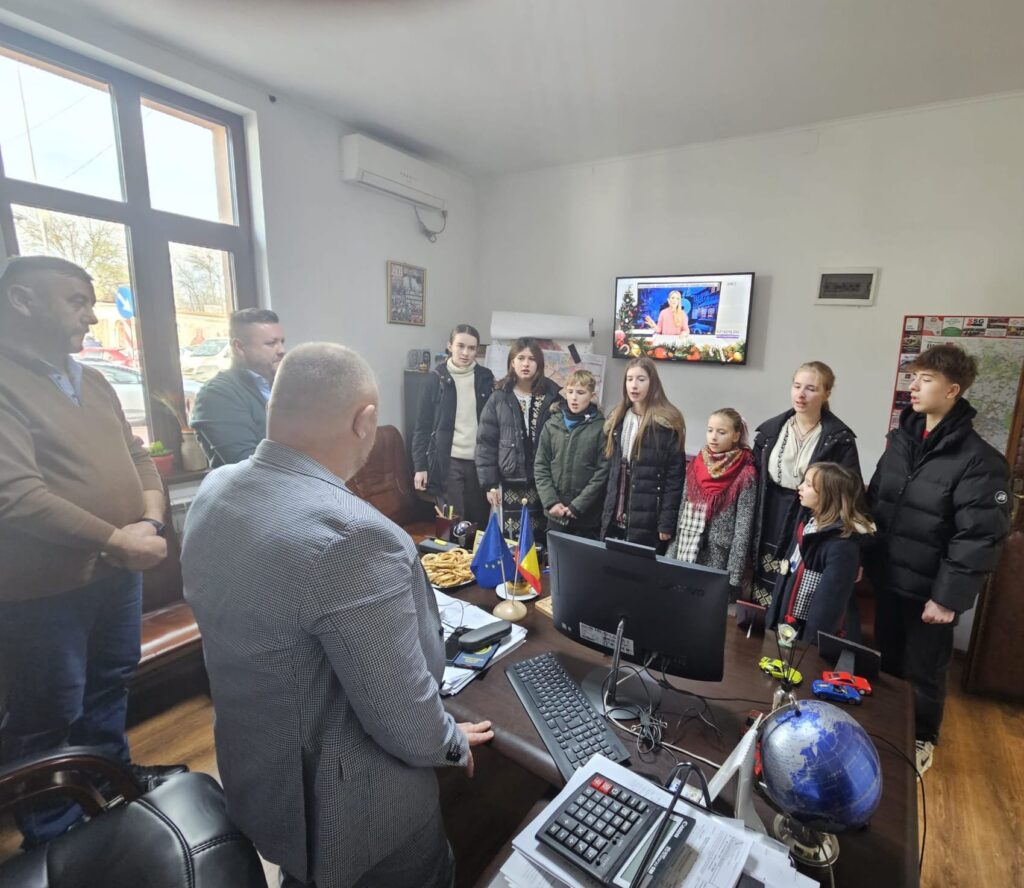 „Astăzi a fost o zi specială, fiindcă în pragul Sfintei Sărbători a Crăciunului au venit colindători la primărie. Au fost primiți cu mare bucurie.